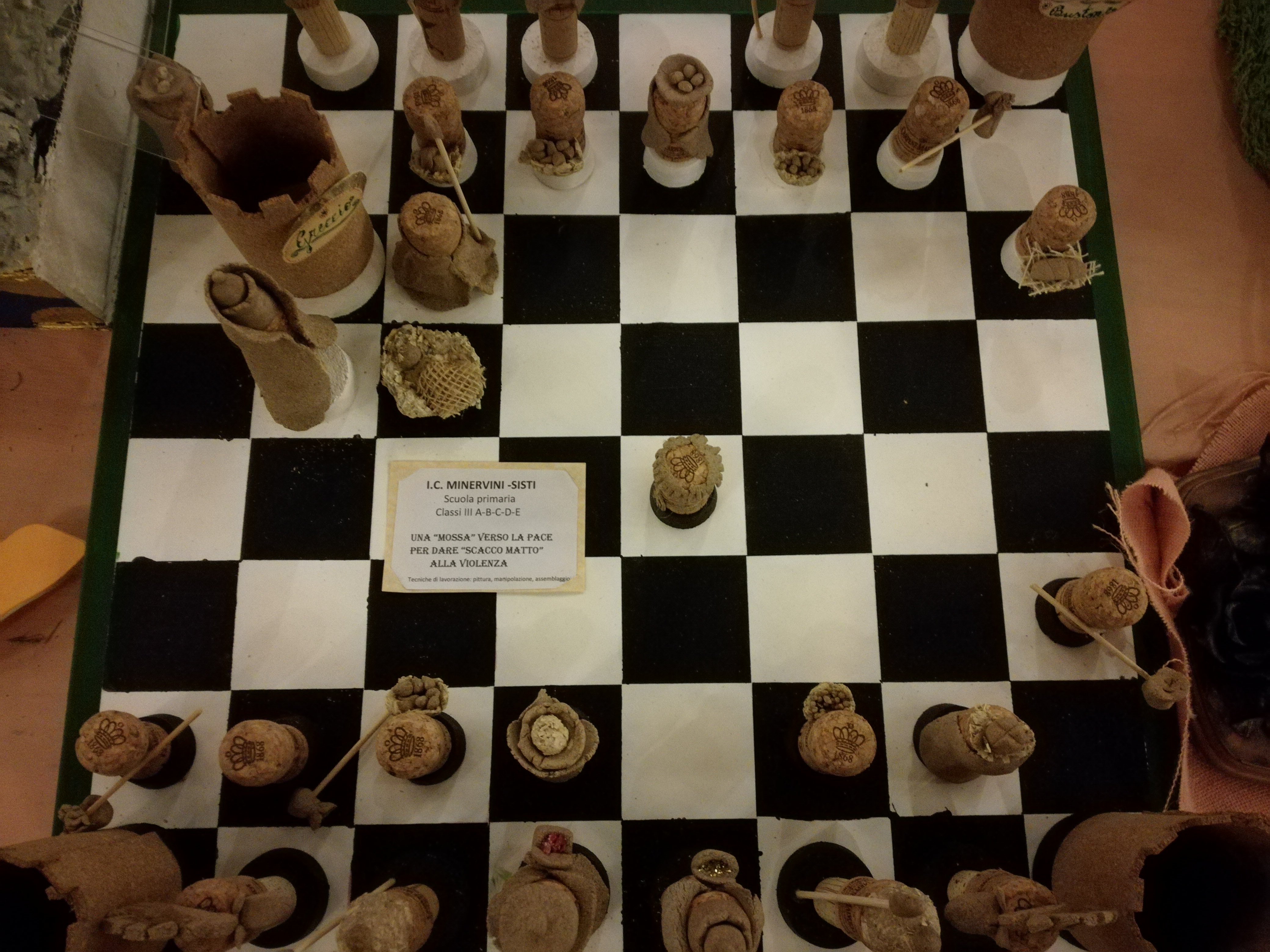 – Terzo Premio: Istituto comprensivo Minervini Sisti 3°A B C D E, “Scacchi, una mossa verso la pace per dare scacco matto alla violenza”